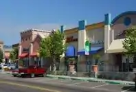 El Cerrito Plaza is located on the southern border of El Cerrito (adjacent to the city of Albany) between San Pablo Avenue and the BART rail tracks.[1] Directly to the north is the El Cerrito Plaza BART station.[2]