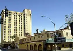El Cortez, a hotel and casino, is a relatively small downtown Las Vegas gaming venue a block from the Fremont Street Experience and Las Vegas Boulevard. Slots, table games, and a race and sports book occupy one floor of the main pavilion, at this historic casino. It opened on Fremont Street on November 7, 1941, and is one of the oldest casino-hotel properties in Las Vegas, along with the nearby Golden Gate Hotel and Casino. Primarily Spanish Colonial Revival in style, it reflects a 1952 remodel when the façade was modernized.[2] On February 22, 2013, the structure was placed on the National Register of Historic Places.[3]