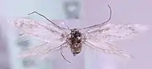 Adults have silky white forewings.[2]