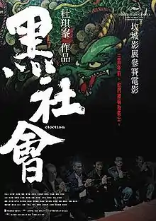 Election (Chinese: 黑社會; literal title: Black Society, a common Cantonese reference to the triads), is a 2005 Hong Kong crime film directed by Johnnie To. Featuring a large ensemble cast, the film stars Simon Yam and Tony Leung Ka-fai as two gang leaders engaged in a power struggle to become the new leader of a Hong Kong triad.