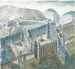 In the late 16th century, archbishop Johann von Schönenberg planned building a residence in the style of the German Renaissance for which parts of the Medieval fortress, as well as many houses, were demolished. It was only because the Roman walls proved to be resistant that some of them were incorporated in the new structure. Von Schönenberg's successors, Lothar von Metternich and Philipp Christoph von Sötern, completed the lower palace (Niederschloss) around 1650. The new residence was known as Saint Peter's Castle (St. Petersburg), after the town's patron saint. A chapel dedicated to Saint Lawrence stood on the south-west corner. In the same period work had started on the upper palace wings (Hochschloss) but this project was halted as a result of the Thirty Years' War. At this time, the bishops preferred their Koblenz residence at Ehrenbreitstein, which was considered safer.