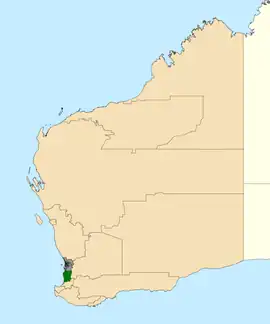 Location of Murray-Wellington (dark green) in Western Australia