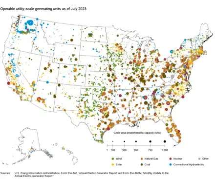 - ↑ "What is U.S. electricity generation by energy source?". eia.gov. Retrieved September 30, 2019.