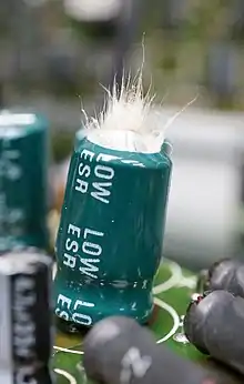 - ↑ NCC, Technical Note Judicious Use of Aluminum Electrolytic Capacitors PDF Archived 2014-12-14 at the Wayback Machine
