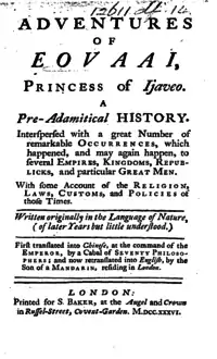 - Adventures of Eovaai, Princess of Ijaveo: A Pre-Adamitical History (1736)