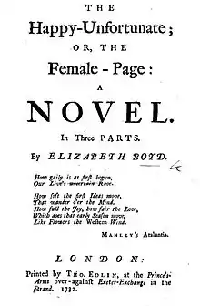 Elizabeth Boyd (c. 1710 – 1745) was an English writer and poet who supported her family by writing novels, poetry, a play, and a periodical.[1] She also wrote under the noms de plume Louisa or Eloisa. Boyd is one of three known members of the Shakespeare Ladies Club.[2][3]
