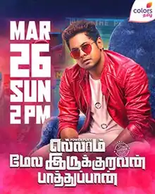 After remaining unreleased for several years, the makers announced that the film would have a theatrical release across Tamil Nadu on 7 April 2023 through the distributor Saraswati Enterprises.[9] In a turn of events, the film was selected by Colors Tamil for a direct television premiere on 26 March 2023. Kaviraj noted that he was satisfied with the mode of release as the "film would reach a larger audience through the premiere".[10][11]