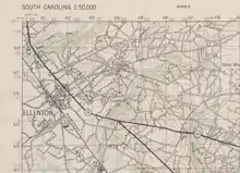 Ellenton's location was approximately 33°13'15" N and 81°43'53" W on the Aiken County – Barnwell County line.