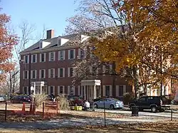 Elliott and Stoddard Halls are the two oldest remaining buildings on Miami University's Oxford Ohio campus today. Built in 1825 (Elliott) and 1836 (Stoddard), they were designed in the Federal style and modeled after Connecticut Hall at Yale University. They continue to be used as dormitory buildings, making them the two oldest college dormitories still in use in Ohio. They were the original dormitories on the campus and were built to house students who attended classes at Miami's campus.[2] They have both been through a number of renovations, most recently in 2011.[3] The dorms are located in between the two academic quads located in the center of Miami's campus. They face another landmark on the campus, the Miami University seal. Over time they have become landmarks on the campus and are considered two of the most prestigious dorms to live in.[4][5] They are also listed on the National Register of Historic Places. Today, they house students in the Scholar Leaders program.[2][6][7] The buildings are named for early Miami professors Charles Elliott and Orange Nash Stoddard.