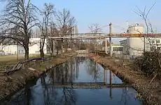 - ↑ The former location of the Gröditz lock is in the now filled section at the entrance to the steelworks.