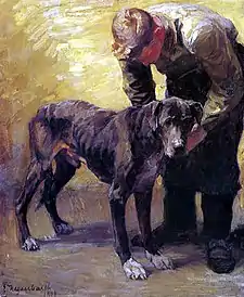 Gabriel von Hackl and Carl Marr were his first instructors, but his primary influences came from a class in animal painting taught by Heinrich von Zügel, one of the founders of the Munich Secession. He also joined the Verein bildender Künstler Dresden, which would later become the inspiration for the Dresden Secession. After its dissolution in 1900, he was affiliated with Die Elbier, a circle of artists associated with Gotthardt Kuehl . From 1901, he worked as a freelance artist in Munich. In 1902, he married Zügel's eldest daughter, Anna Emilie.[1]