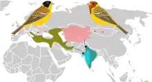 Breeding and winter distribution ranges of Black-headed and Red-headed Bunting