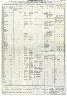 - ↑ This chart, which measures 15" by 22" and folds up several times to fit in the volume, was sent with instructions that it be bound at the end of the Chemistry article in the main encyclopedia. This whole story can be read in detail in the preface to the 7th edition, as well as in David Brewster's article for the Edinburgh Review, which he wrote reviewing the 7th edition when it was published in 1842