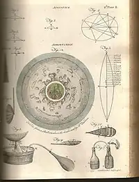 There is a color plate, opposite page 208 in volume 1, named "2nd plate II" in the Aerostation article, although it was printed in B&W and colored by hand.[7] The aerostation article describes balloon flight from 1783 to 1788, but Tytler does not mention his own balloon flights of 1784. Tytler's earlier treatise on balloon flight, written in 1784, appeared in the 200-page appendix to the second edition, in Volume 10 under "Air".