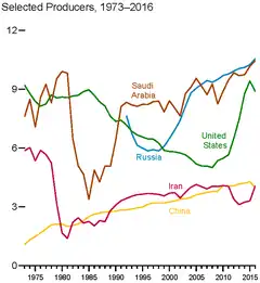 Iran has the third largest consumption of natural gas in the world after United States and Russia.[24] Iran also has the world's largest growth rate in natural gas consumption.[25]