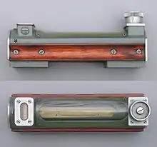 The upper image is a plain precision level used in the engineering field to level machines or workpieces; the lower image shows an adjustable precision level that has an accuracy of 1:10000. The adjustable nature of this level can also be used to measure the inclination of an object.