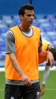 After a successful pre-season,[9] Vallès made his competitive debut for Birmingham in the second-round League Cup-tie against Rochdale on 26 August 2010.[10] His only other appearance came in the next round of the League Cup, and a proposed loan move to League One (third-tier) club Brighton & Hove Albion or possible return to Spain came to nothing when the player suffered a stress fracture to his foot.[11][12] He made a return to the first-team squad as an unused substitute for the final match of the season, which confirmed Birmingham's relegation from the Premier League,[13] and the club took up their option to extend his contract for a further year.[12] Vallès was occasionally included in the matchday squad during that year but made no more first-team appearances, and he was released when his contract expired at the end of the 2011–12 season.[14]