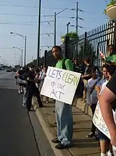 The environmental justice movement in the US was heavily influenced by the civil rights movement, and shares many of the same goals and tactics.[105][106] Existing community organizations and leaders that contributed to mobilize the civil rights movement have also engaged in environmental justice work.[106] Several prominent environmental justice lawsuits in the US have attempted to claim discrimination based on the Civil Rights Act of 1964, though none of these have so far been successful.[107]