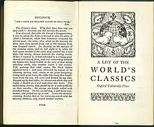 The first citation of the word epilogue in the Oxford English Dictionary is from 1564: "Now at length you are come to the Epilogue (as it were) or full conclusion of your worke."[6] Prior to this the OED only refers to Caxton's term ‘Epylogacion’ in 1474, ‘The Epylogacion and recapitulation of this book’. However, this term was not widely followed and instead ‘conclusion’ was the term used to introduce final words of a text. The first example of a dramatic epilogue in print is John Phillip's The Play of Patient and Meek Grissell (1569).[7] Although in non-dramatic publications, the word does appear prior to this such as in Turbervile's Epitaphs (1566).