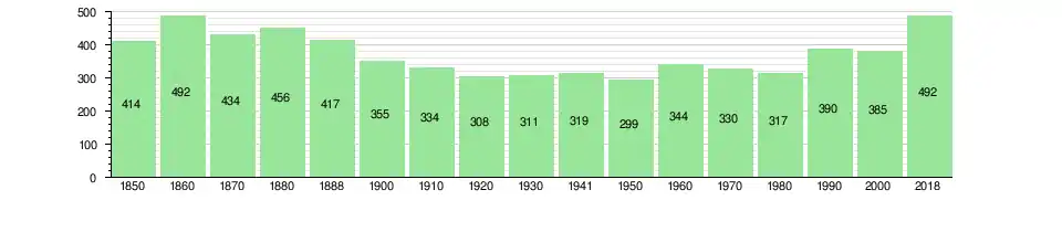 Ernen has a population (as of December 2020) of 518.[7] In 2008, 5.2% of the population were resident foreign nationals.[8] Over the 10 years 1999–2009, the population changed at a rate of -8.3%. It has changed at a rate of 0% due to migration and at a rate of -7.1% due to births and deaths.[4]