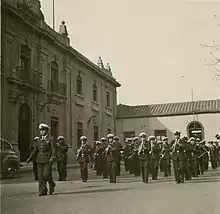 The band service was created on 16 June 1934, in the then "El Bosque" Anti-Aircraft Artillery Group, just four years after the creation of the National Air Force. The management of the squadron was entrusted to Commander Osvaldo Puccio Guzmán. The band was founded with only 16 musicians and its first director was First Sergeant Enrique Pacheco García, who later held the position of Captain of the band service. Apart from aeronautical activities, there was also the task of organizing a concert band, which after prolonged efforts by the end of 1934, based on some musicians from the Anti-Aircraft Artillery Group became part of the first "Orfeón de la Fuerza Aerea Nacional".[2] The Orfeón premiered publicly in the kiosk of the Plaza de Armas in Santiago on 19 January 1935. In July of the 1961, seeing the institution increase the activities of its military bands, it was decided to create bands serving the Air Force NCO School and the Air Force School. These two bands now serve as the service's official ceremonial bands during national events.