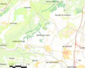 Map of Espira-de-l'Agly and its surrounding communes
