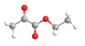 Ethyl pyruvate is small molecule with both ketone and ester functionality. The molecule has no hydrogen donors, but three atoms that are hydrogen receptors. Three of the bonds are rotatable and there are no stereocenters.[4] The molecule has two carbonyl carbons, which can act as electrophiles, as well as three α-hydrogens. Ethyl Pyruvate can also be synonymous with ethyl 2-oxopropanoate, Ethyl-2-oxopropanoat, Propanoic acid, 2-oxo-, ethyl ester, Pyruvic acid, and ethyl ester[5]