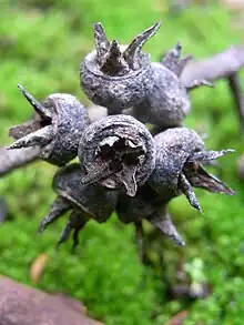 Fruit (gumnuts) of the Wollemi stringybark in Yengo National Park, Australia
