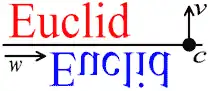 Reflections, or mirror isometries, denoted by Fc,v, where c is a point in the plane and v is a unit vector in R2. (F is for "flip".) have the effect of reflecting the point p in the line L that is perpendicular to v and that passes through c. The line L is called the reflection axis or the associated mirror. To find a formula for Fc,v, we first use the dot product to find the component t of p − c in the v direction,