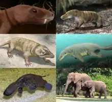 3rd row: Ornithorhynchus anatinus (platypus), Loxodonta africana (African bush elephant).