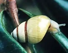 Euglandina rosea, the rosy wolfsnail or cannibal snail, is a species of medium-sized to large predatory air-breathing land snail, a carnivorous terrestrial pulmonate gastropod mollusk in the family Spiraxidae.[1]
