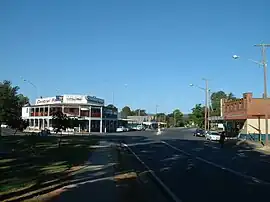The town includes a supermarket, two hotels, a newsagent, a butcher and golf and bowling clubs, as well as farm produce suppliers, lucerne crops and a sawmill.[7]
