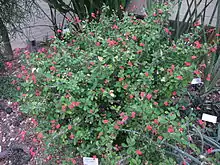 Euphorbia milii var. splendens is a variety of the species Euphorbia milii.[1] Like the other varieties of E. milii (and other plants in the spurge family Euphorbiaceae) E. m. var. splendens produces a milky latex that is an irritant poison. Under the name sijou (alternative spelling sijwu) the plant, known formerly as Euphorbia splendens, is considered to be sacred in the Bathouist religion of the Bodo people of Assam, West Bengal, Nagaland and Nepal, in which it symbolizes the supreme deity, Bathoubwrai (Master of the Five Elements). This cultivation of the sijou tree for ritual purposes was particularly strong among the Bodo people (known also as Mech) of the Goalpara region. The plant does not often set seed, but is easy to propagate vegetatively; branches broken from an established plant root readily as cuttings. Families that follow Bathouism plant a sijou shrub at the northeast corner of their courtyard in an altar referred to as the sijousali. Bodo communities that follow Bathouism generally plant a sijou shrub or small tree in a piece of communally-owned land, which they fence with eighteen pairs of bamboo strips with five fastenings. Each pair symbolizes a divine couple consisting of a minor God and Goddess. From bottom to top, the five fastenings (bando) signify birth, pain, death, marriage and peace/pleasure. The milestones on the path of life represented by the bottom three fastenings are those that one cannot escape; whereas those symbolized by the top two are not necessarily attained by all.[2]