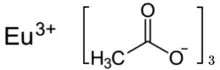 Europium(III) acetate is an inorganic salt of europium and acetic acid with the chemical formula of Eu(CH3COO)3. In this compound, europium exhibits the +3 oxidation state. It can exist in the anhydrous form, sesquihydrate[lower-alpha 1][1] and tetrahydrate.[2] Its hydrate molecule is a dimer.[3][4]