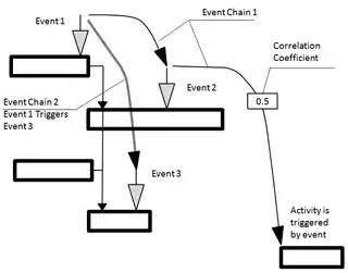 3. Correlation coefficient or probability that one event is triggered by another event is presented on event chain in the rectangular box.