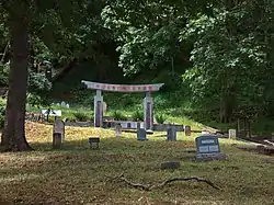 The cemetery is divided into five sections including the Grand Army of the Republic; the Freemasons; the main section; the "evergreen extension" added in the 1940s; and the Chinese section (due to the anti-Chinese sentiment, which led to the Chinese Exclusion Act of 1882).[3] The Chinese section of the cemetery allowed for traditional Chinese funerals featuring firecrackers, processions and a Chinese oven-onsite for food served.[1] The Santa Cruz Museum of Art and History oversaw the construction of a Chinese gate in 2014, to honor those buried.[4] The Grand Army of the Republic section, was created by a fraternal organization of the American Civil War veterans honoring those who fought to end slavery and supported the Union.[1]