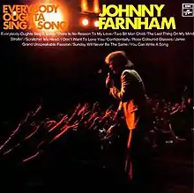 Everybody Oughta Sing A Song is the second solo studio album by Australian pop singer John Farnham (billed then as Johnny Farnham) and was released on EMI Records in November 1968.[1][2][3] Its first single, released in July, was the double A-sided, "Jamie"/"I Don't Want To Love You", which peaked at No. 8 on the Go-Set National Singles Charts.[1][4] The second single, "Rose Coloured Glasses" was released in October and peaked at No. 16.[1][5] Writers on the album included Hans Poulsen, Neil Diamond and Quincy Jones. The album was re-released in 1974 with a different cover, it shows Farnham performing live on stage, whereas the initial 1968 release had him leaning against a Holden Monaro (see infobox at right).