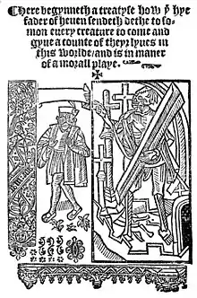 ![]() Frontispiece from edition of Everyman published by John Skot c. 1530. | |
