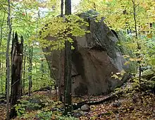 Refuge forests are home to significant numbers of plant species that are or may be designated as threatened or vulnerable, including a species of extreme rarity (e.g. known to be found in less than five places in Quebec) or a forest with a remarkable population of threatened or vulnerable species. Candidates for refuge forest status are assessed through a detailed review of information held by the Quebec Ministry of the Environment on the location of species, importance of populations, nature of their habitats and their provincial priority rank on the ministry's official list of species.[4] This type of ecosystem is found mainly in southern Quebec. Threatened or vulnerable species are mainly at risk from habitat loss. Preservation of the refuge forests is essential to their survival, and to preserving biodiversity.[2]