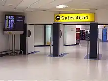 In October 2010, Gatwick Airport Limited (GAL) received planning permission from Crawley Borough Council to adapt both terminals to handle the Airbus A380 on a regular, commercial basis.[24] At the Gatcom meeting held on 26 January 2012 at Crawley's Arora Hotel, GAL announced that its board had approved construction of A380 pier infrastructure comprising new three-bridge gates at the North Terminal's Pier 6.[25][26] The first of these became operational on 26 March 2013.[27]