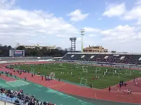 Expo '70 Commemorative Stadium (万博記念競技場, Banpaku Kinen Kyōgi-jō), a.k.a “Osaka Expo '70 Stadium", is an athletics stadium located in the Expo Commemoration Park, the site of Expo '70, in the city of Suita, Osaka Prefecture, Japan. It has a capacity of around about 21,000.