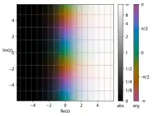 - values with a constant imaginary part are mapped to rays extending from zero