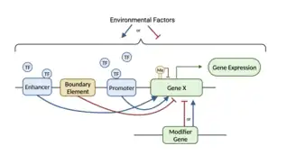Figure 1. This figure illustrates some factors influencing gene expressivity including cis-regulatory elements, trans-acting factors, environmental factors, and DNA modification. Credited with Biorender.com.
