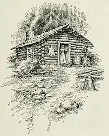 Meeker first made a claim in January 1853 about 40 miles (60 km) downriver from Portland, on the current site of Kalama, Washington. There, he built a log cabin and began his first farm. He did not build close to the water, which proved fortunate as there was a major flood on the Columbia soon after he claimed the land. Instead, he profited from the incident, selling logs the river left on his claim, together with trees he chopped down, for lumber.[22]