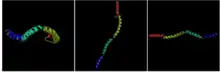 The protein sequence of FGFR1OP2 was analyzed using PELE, and appears to be made up of mostly alpha helices.