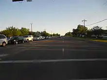 FM 1938 (Davis Boulevard) begins at its southern terminus with SH 26, directly besides the raised Interstate 820 (I-820) freeway. FM 1938 continues on for about 0.2 miles (0.32 km) before two exit ramps coming from I-820 merge with it, giving incomplete access to the freeway. The highway proceeds as a paved, asphalt, six-lane highway, with a center left-turn lane dividing it. The road continues through "downtown North Richland Hills", passing several small businesses and large residential neighborhoods. Along this stretch, FM 1938 is traveling due north.[3] After an intersection with Smithfield Road, the highway turns in a northeastern direction and heads that way. It continues through North Richland Hills, intersecting with several large roads and passing a set of railroad tracks. The highway heads north for about 5.5 miles before intersecting with FM 3029 and entering the city of Keller. The highway proceeds through Keller, passing several small businesses and large neighborhoods. FM 1938 passes through Keller for about one mile (1.6 km) before passing over a small creek and entering the city of Southlake.[4] Just after entering Southlake, the highway passes a large landscaping and stone supplies facility. FM 1938 continues through Southlake for approximately one mile (1.6 km), passing several small businesses, before reaching its northern terminus, as of 2012, FM 1709.[5]