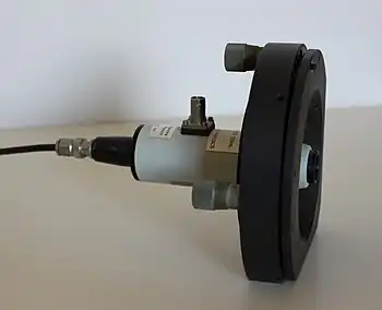 In optics, a Fabry–Pérot interferometer (FPI) or etalon is an optical cavity made from two parallel reflecting surfaces (i.e.: thin mirrors). Optical waves can pass through the optical cavity only when they are in resonance with it. It is named after Charles Fabry and Alfred Perot, who developed the instrument in 1899.[1][2][3] Etalon is from the French étalon, meaning "measuring gauge" or "standard".[4]