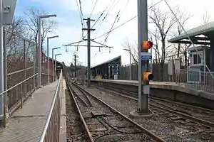 Fallowfield is a station on Pittsburgh Regional Transit's light rail network, located in the Beechview neighborhood of Pittsburgh, Pennsylvania.[2] The high level stop is located at the end of Broadway Avenue, built where the tracks transition from a street to a private right-of-way. The station serves a densely populated residential area through which bus service is limited because of the hilly terrain. Although a high level stop, there is no fare booth, so passengers must board or alight from the first car of a two car train.