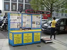 Practitioners also stage sit-ins and demonstrations outside Chinese embassies and consulates. Falun Gong practitioners in Vancouver, British Columbia, Canada continue to stage the world's longest, continuous protest against the persecution. It which runs twenty-four hours a day at the entrance to the PRC consulate on Granville Street.[48] In June 2006, it was announced by the mayor of Vancouver that the protest signs and structures must be taken down in accordance with a by-law against building permanent structures on public property.[49] In 2010, the B.C. Court of Appeal ruled that the city's order to remove the protest structures was unconstitutional, and the structure was restored.[50]