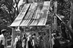 After waiting hours[9] for a ride up the mountain from embarkation points at the Marin County Civic Center, Mill Valley and other locations, attendees were greeted by a giant Buddha balloon when they arrived at the amphitheater. Transportation was provided by the tongue-in-cheek-named "Trans-Love Bus Lines", a variation of the line "Fly Trans Love Airways, get you there on time" from the lyrics to Donovan's song "Fat Angel". Performances were on a main stage and a smaller second stage. Various art-fair type vendors sold posters, crafts and refreshments from booths scattered in the woods around the amphitheater. The festival included a large geodesic dome of pipes and fittings covered with black plastic that contained a light and sound show.[10][11][12]